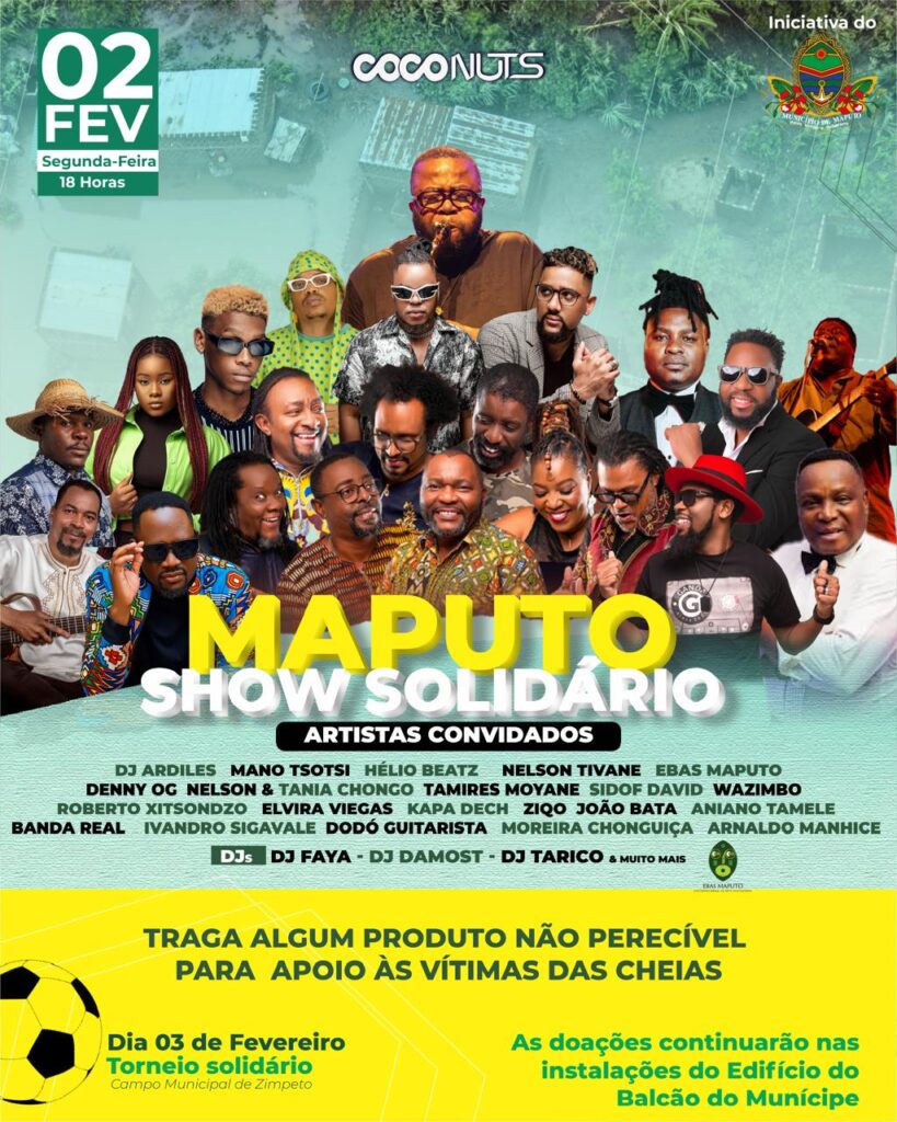 Maputo volta a unir-se em torno da solidariedade com as vítimas das recentes inundações que afectaram comunidades e causaram perdas humanas e materiais, numa iniciativa solidária agendada para o próximo dia 2, no espaço Coconuts, a partir das 8 horas. A acção, que culminará com um mega concerto solidário ao final da tarde, pretende mobilizar a sociedade para a recolha de bens essenciais destinados às famílias afectadas.