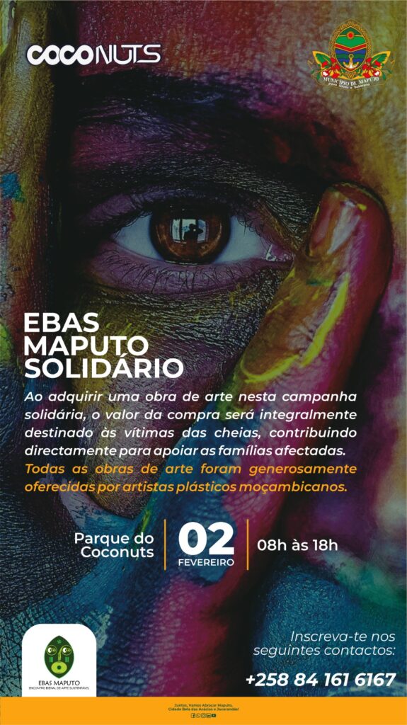O evento resulta de uma acção conjunta que envolve o Conselho Municipal de Maputo, o Coconuts, aEBAS Maputoe outros parceiros institucionais e privados. Ao longo do dia, estarão disponíveis obras de arte generosamente cedidas por artistas plásticos moçambicanos, cuja receita reverterá integralmente a favor das vítimas das cheias.